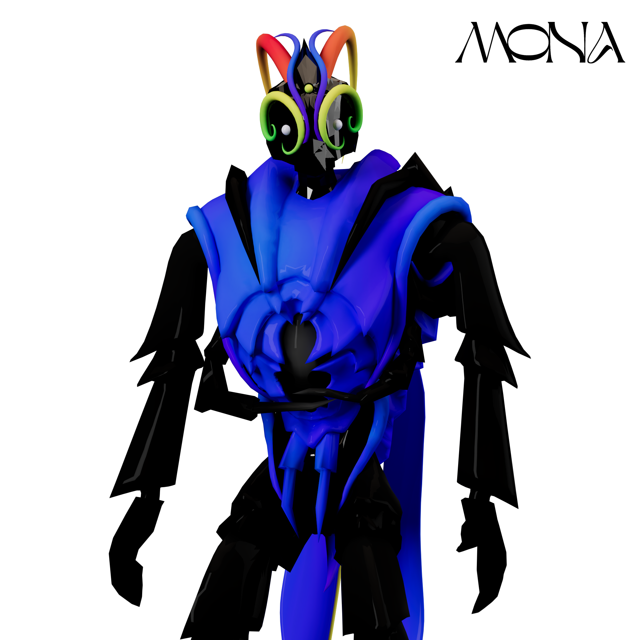 Mason’s avatar, Indigo Thornbug, is an exploration of biomimicry. The avatar is an insect pretending to be a human, with hidden features on her body. We asked Mason more about Indigo Thornbug, and how he came to be a self-proclaimed “Metaverse maximalist.”