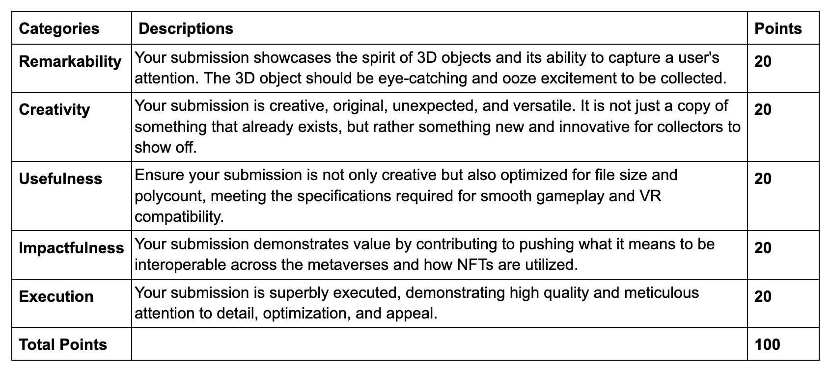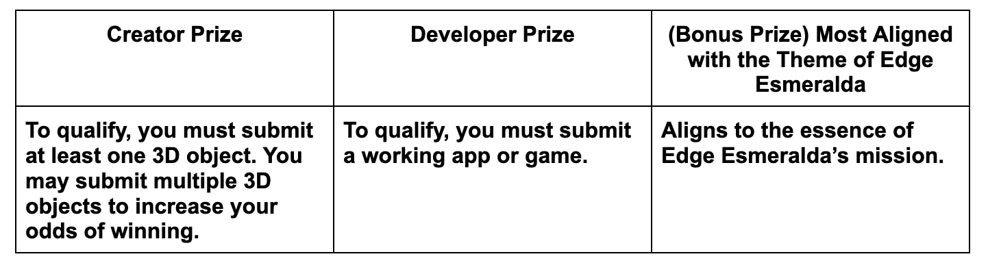 There will be a bounty of $10,000 where allocation will be determined by total submission of projects (finalized assets, experiences, and/or apps).