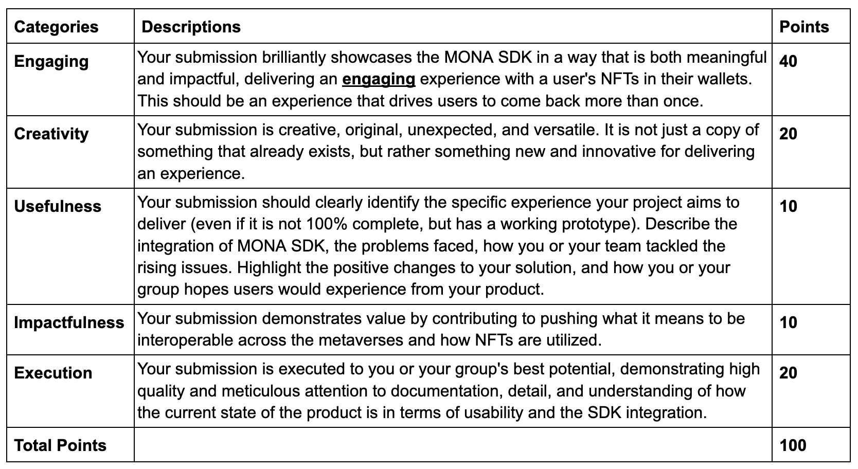 - To qualify, developers must build an application that integrates the MONA SDK or API.